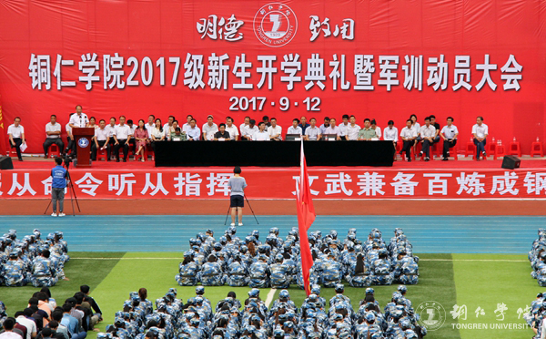 9月12日上午,伟德官网在田径运动场召开2017级新生开学典礼暨军训动员大会。党委书记李树新、校长侯长林、党委副书记饶小华、副校长代亮,碧江区人民武装部政委、军训团团长卫心博上校以及伟德官网各专业学院、部分职能部门负责人出席典礼。典礼由代亮主持。