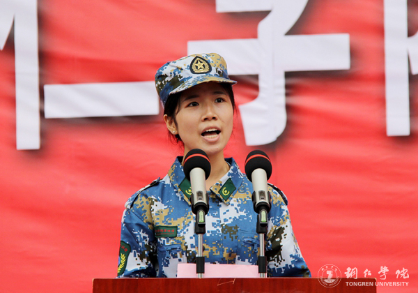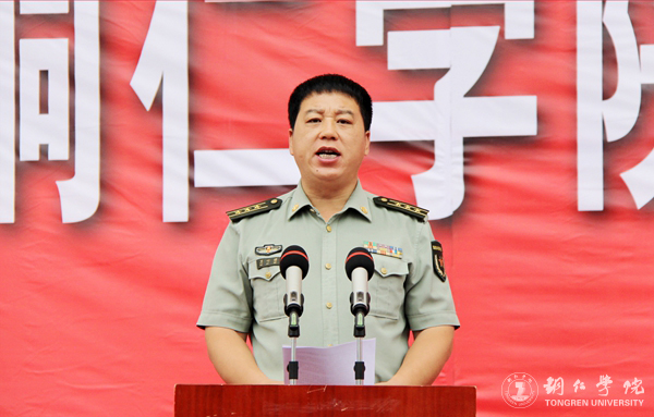 碧江区人民武装部政委、军训团团长卫心博上校作军训动员讲话