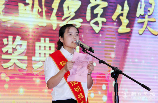 典礼上,饶小华宣读了《bv伟德国际1946关于对2017年获得明德学生奖的学生进行表彰的通知》,18位宣读颁奖词嘉宾分别为获奖学生宣读颁奖词,李树新、侯长林为获奖学生颁奖,获奖学生代表何林霞作了发言。