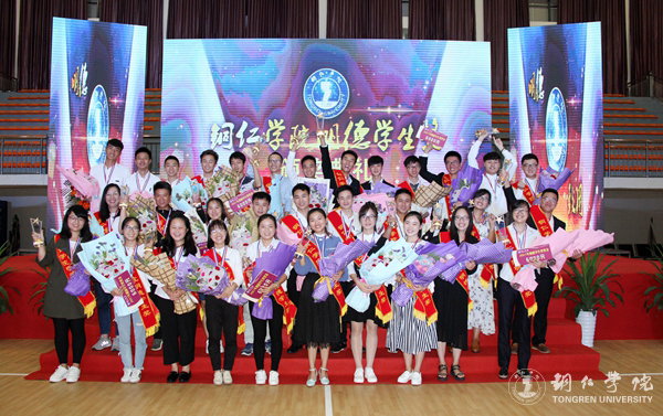校领导、宣读颁奖辞嘉宾与获奖学生合影