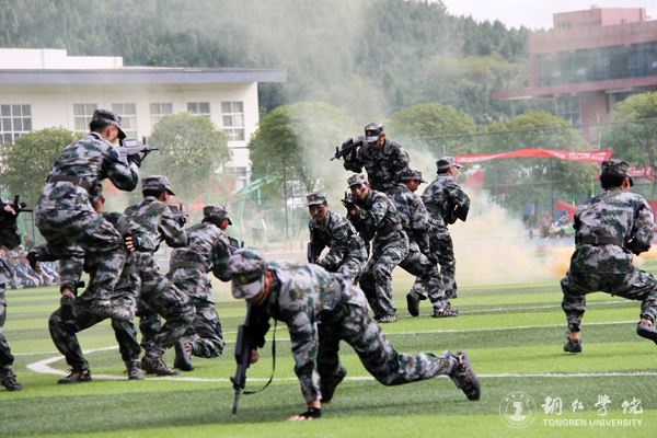 值得一提的是,大会开始前,在指挥人员指挥下,全体合唱了廉政歌曲《八荣八耻》,举行了廉政歌曲、军歌的拉歌比赛。同时,此次军训汇报连队表演亮点也是非常之多。礼仪方阵的382名女生通过队形、姿势变换,演绎bv伟德国际1946精神,展现了“bv伟德国际1946”“明德致用”“1920”“97”等字样,获得一阵阵热烈掌声;女子匕首操表演中,她们出拳、挥刀、卧倒,各个姿势都铿锵有力,体现了巾帼不让须眉的气势;校民兵应急分队的特种战术表演、教官的搏击术表演更是气势震天、令人震撼,得到了大家的高度赞扬。