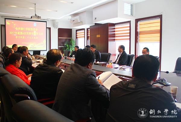 10月18日,伟德官网在行政楼8312会议室召开2017年度第6次党委专题学习会,对十九大报告开展学习讨论,将从严治党向纵深发展。党委书记李树新,党委副书记、校长侯长林,党委委员、纪委书记彭吉黔,党委委员、副校长代亮、王嘉福出席会议;部分党政部门负责人参加会议。李树新主持会议。