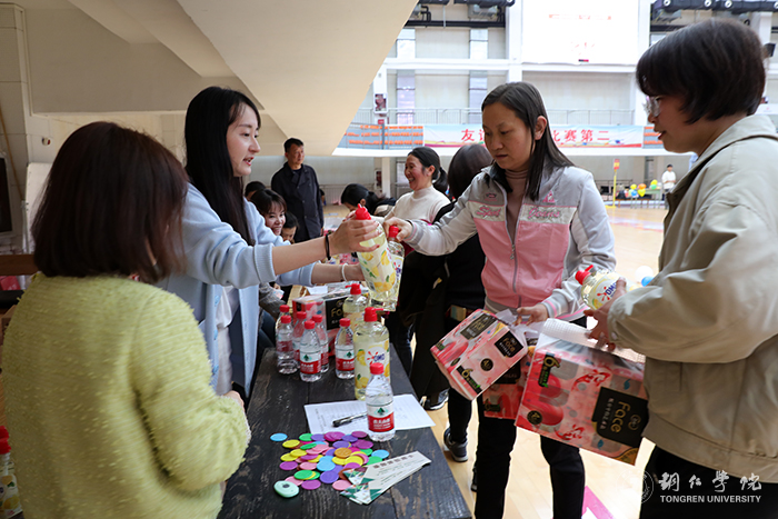 随着主持人一声令下,大家精神抖擞,热情高涨,纷纷加入到各项趣味活动当中,现场热闹非凡。“开、合、开、合、开开合……”在竹竿舞现场,伴随竹竿的“啪啪”声,老师们三五人一组,踏着节奏,跳起了紧张而有趣的竹竿舞。在你比我猜现场“一人口手并用比划引导,一人心领神会快速猜题,两人配合默契十足”玩起了表达力与想象力高度结合的智力游戏。还有花样跳绳、蒙眼敲鼓、抖乒乓球等游戏,不仅考验着老师之间的协作能力,而且考验着老师个人的身体素质,活动具有挑战性又不失趣味性。活动中,老师们敢于挑战,积极参与,欢声笑语萦绕在整个场馆,充分展现了新时代bv伟德国际1946女职工良好的时代风貌和bv伟德国际1946人昂扬向上的精气神。