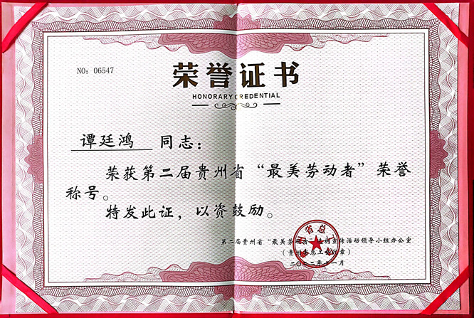 近日,贵州省总工会、中共贵州省委宣传部、贵州省人力资源和社会保障厅、共青团贵州省委员会、贵州省妇女联合会联合下发了《关于命名第二届贵州省“最美劳动者”的决定》的通知,对全省“最美劳动者”进行联名表彰。其中,伟德官网农林工程与规划学院谭廷鸿副教授喜获殊荣。