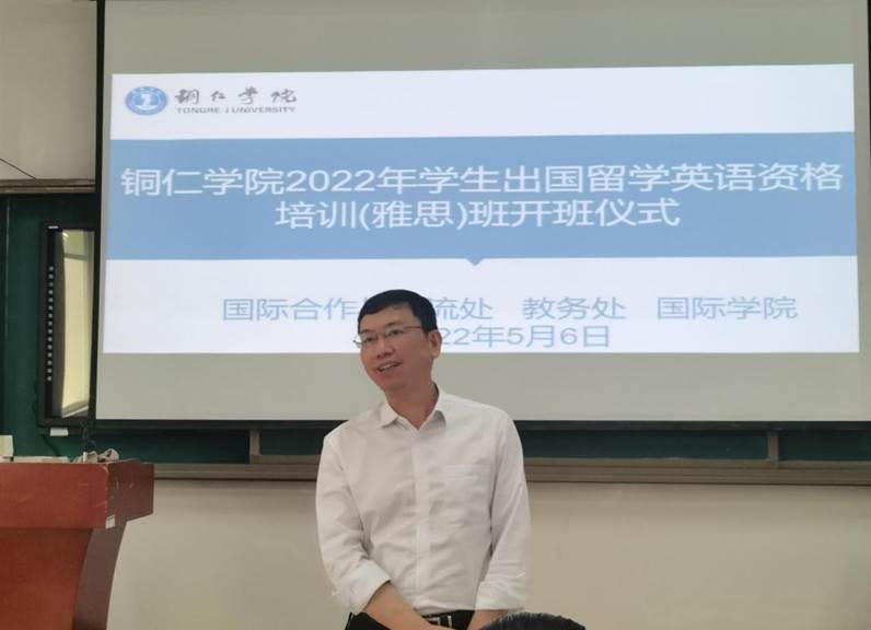 5月6日下午,由国际合作与交流处牵头、国际学院承办“2022年bv伟德国际1946学生出国留学英语资格培训(雅思)班”(下称雅思班)顺利开班。国际合作与交流处处长刘姗、国际学院院长田兴斌、教务处副处长马俊锋、国际学院副院长杨芹,各学院外事联络员、雅思班全体任课教师及学员参加了开班仪式,仪式由李念主持。