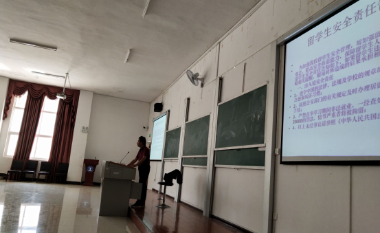 9月24日上午9:00 在博思楼105伟德官网保卫处副处长石波老师为国际新生开展安全教育讲座。石波副处长用生动的案例告诉国际新生如何防火、防盗、防抢、防诈骗、防校园贷、防溺水、防震、防毒、防网络犯罪,并特别提醒私人从事大额外币兑换是违法行为。当天下午,国际学生参与了全校新生的消防演练。