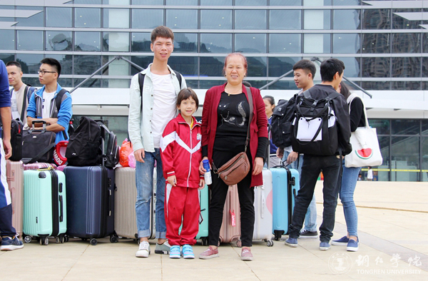 赴马来西亚交流学习学生与家人在火车站合影
