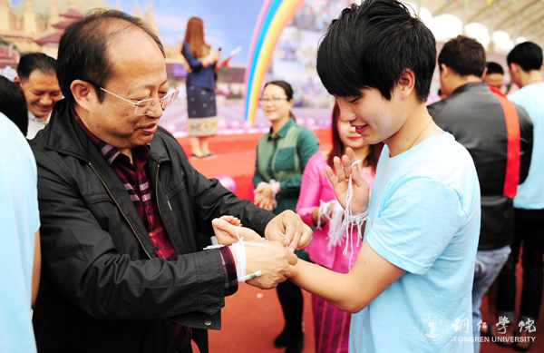 留学生为领导及老师栓绳祈福