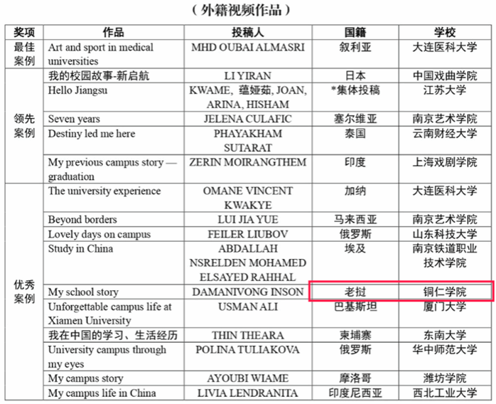 近日,由中国日报社主办的2023年“我的校园故事”英文征文活动公布了获奖结果,其中,伟德官网国际学生DAMANIVONG INSON提交的视频作品《My school story》获外籍视频类优秀案例奖。