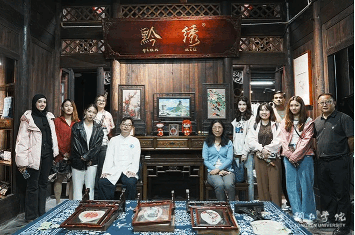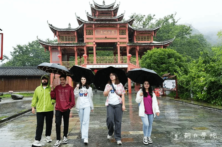 在揭牌仪式的两天,是中外师生民族文化体验参观环节。在伟德官网杨雨桦、刘菊凤、杨梦阳等老师和巴基斯坦、摩洛哥、塔吉克斯坦国籍的3名留学生陪同下,同济大学国际文化交流学院副院长宗骞、院办主任刘怡菲和辅导员时玥带领来自俄罗斯、土库曼斯坦等国家的留学生先后赴寨沙侗寨、云舍、中南门古城、大明边城、贵州傩文化馆、苗王城等地,进行了现场参观,亲身体验,一同探索铜仁多彩的民族文化,感受到了来自中国少数民族文化的深厚底蕴。中外师生通过游览参观、听介绍、亲身体验,对土家族吊脚楼、侗族鼓楼和风雨桥、苗族歌舞服饰、刺绣技艺、太极拳(太极扇、太极剑)、傩戏表演等有了深入了解。他们纷纷表示,铜仁是一片神秘而充满魅力的土地,独具特色和风情,民族文化丰富多彩,传统文化博大精深,自己将会把这次难忘的文化体验经历带回学校、带回自己的国家,与更多同学、亲友分享在中国铜仁的美好故事,共同推动中外文化交流与发展。