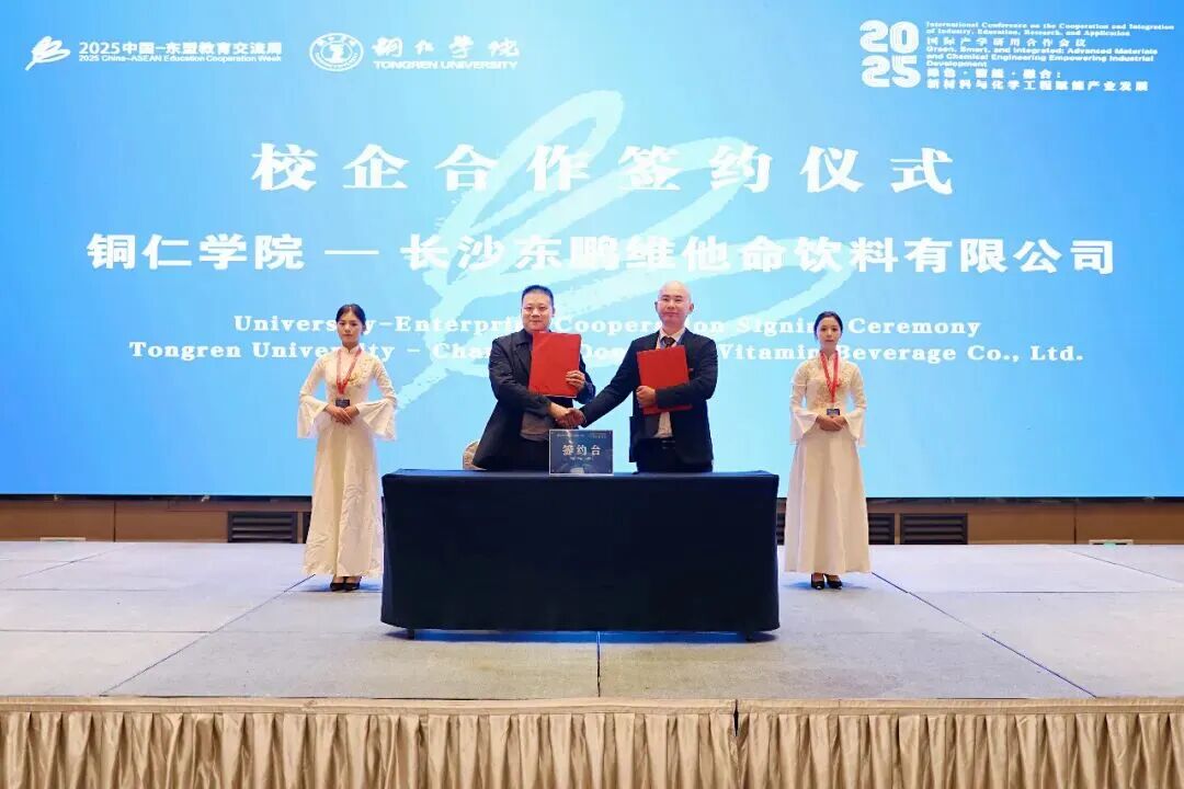论坛上,举行了校地、校企合作签约仪式,伟德官网分别与铜仁市农业农村局、贵州金瑞新材料有限责任公司、长沙东鹏维他命饮料有限公司进行了签约。三方将在人才培养、技术研发、成果转化等方面建立长期稳定的合作关系,通过校政企协同发力,推动产学研用深度融合,共同谱写新材料与化学工程产业高质量发展的新篇章。