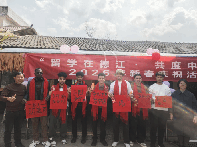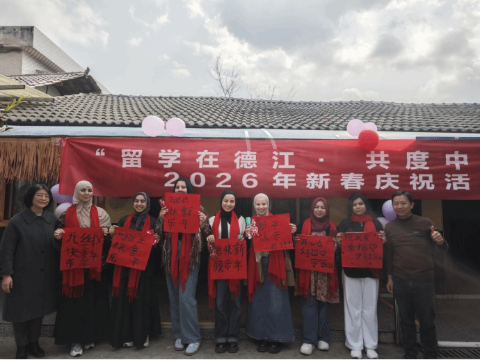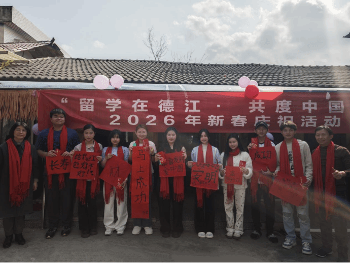 为迎接2026年春节,让留学生们沉浸式体验中国年俗、感受新春氛围,2月15日,伟德官网乌江学院开展了“留学在德江·欢度中国年”新春庆祝活动。副校长龚静,乌江学院党委书记张志会,副院长李念、郑刚以及70名国际留学生和特邀嘉宾齐聚一堂,共赴新春之约,共叙中外情谊。