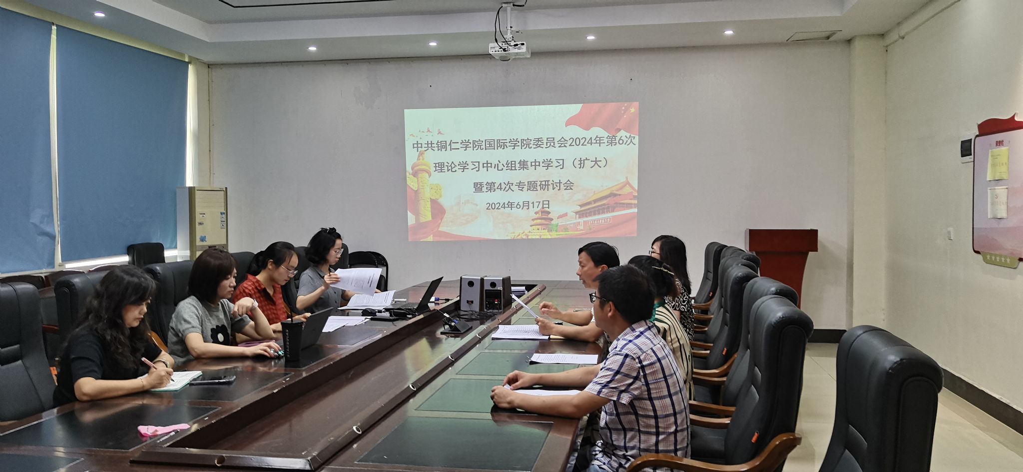 6月17日上午,院党委理论学习中心组在明理楼A三楼会议室召开2024年第6次集中学习暨第4次专题研讨会。会议由院党委书记张志会主持,院党委班子成员、各党支部书记,各系部、科室负责人参加学习研讨。