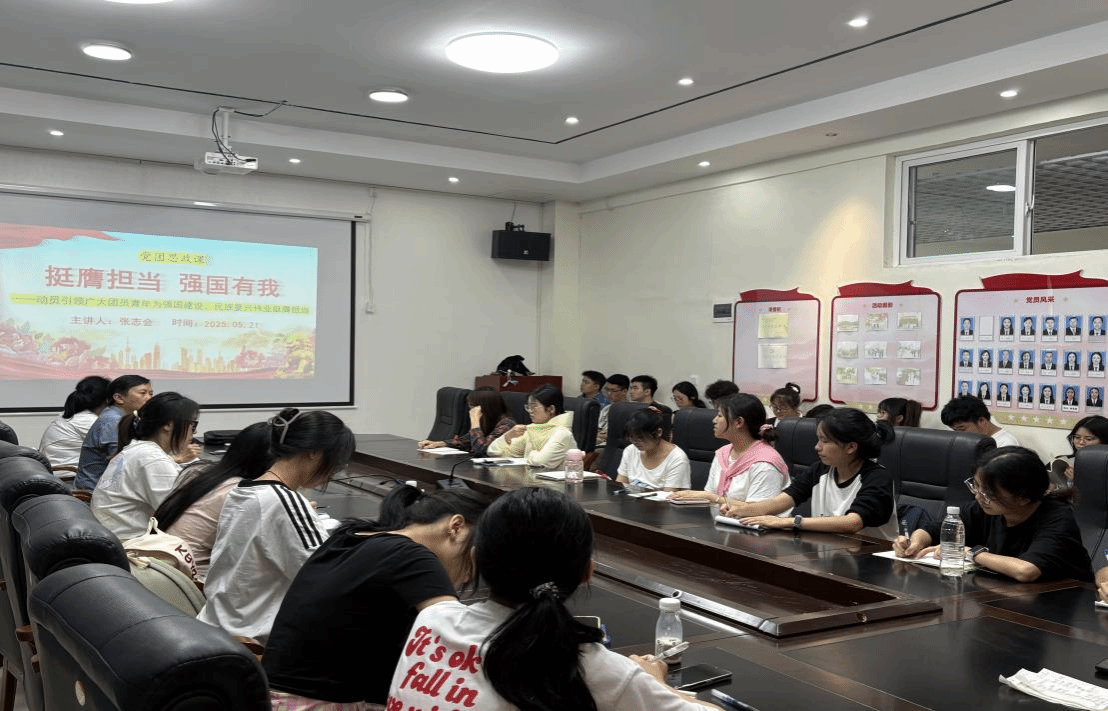 5月22日中午,国际学院党团思政专题讲座在明理楼A三楼会议室举行。本次思政课以“挺膺担当 强国有我——动员引领广大团员青年为强国建设、民族复兴伟业挺膺担当”为主题,由院党委书记张志会主讲,各班入党积极分子、团员发展对象,各班班长、团支部书记、社团会各部长积极参与。