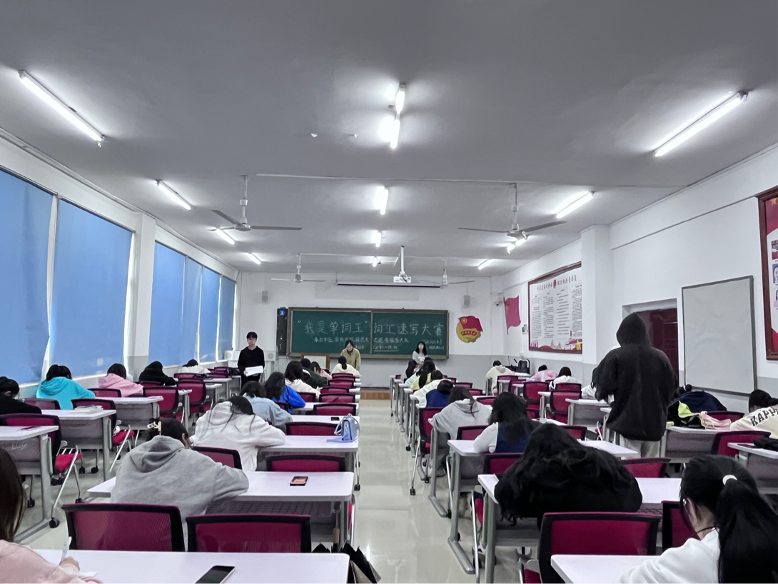为激发学生对英语学习的兴趣,扩展学生英语单词的储备量,营造良好的英语学习氛围,切实提高学生学习英语的兴趣和积极性,丰富校园文化内容,给广大学生提供一个展现自我、提升自我的舞台,国际学院于2023年5月9日中午12:40在明理楼A 401教室举办“我是单词王”词汇速写大赛。
