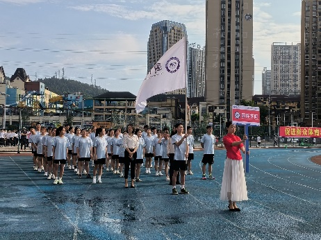 国际学院党委副书记鲁芮汐教授和学生科付睿荻老师带领着国际学院方阵昂首阔步地走过主席台,尽显我院师生朝气蓬勃的精神风貌。紧接着,我院方队的啦啦操表演彰显出无尽的青春活力,赢得了无数的掌声。