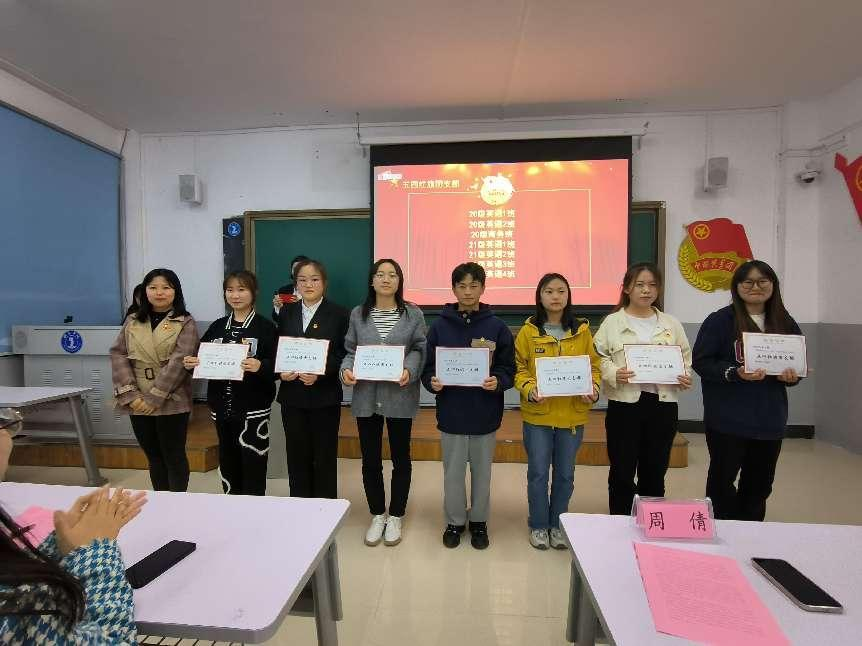 随后,团总支书记周倩老师宣读《国际学院2022年度“五四”评选表彰的决定》,并由周倩老师、团总支副书记刘静静、青年志愿者服务大队队长陶蓉源为获得五四表彰的先进个人和集体颁奖。