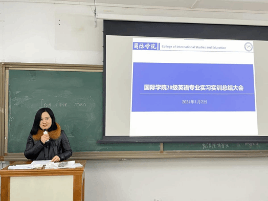 为更好地了解实习工作并有针对性地对其加以完善,国际学院于2024年1月2日在明理楼A401召开了2020级英语专业实习总结大会。出席本次会议的有国际学院副院长杨芹、英语专业教研室主任汪萍、20级英语专业班主任饶华宏以及此次实习带队老师高琼芳。会议由2020级英语1班罗力主持,2020级全体实习生参与。