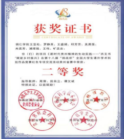 周倩、饶华宏老师分别指导学生,获得第十八届挑战杯全国大学生课外学术科技作品竞赛贵州省一、二等奖。孙用常、饶华宏、高琼芳、杨潇老师指导学生,获得Shopee杯跨境电商创新创业大赛三等奖两项、优秀奖两项。