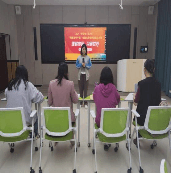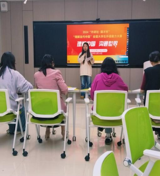 10月14日“外研社•国才杯”“理解当代中国”全国大学生外语能力大赛综合能力赛项bv伟德国际1946选拔赛口试部分在明理楼A301教室举行 ,本次比赛以中国文化的龙为主题,吸引了众多英语爱好者的积极参与。