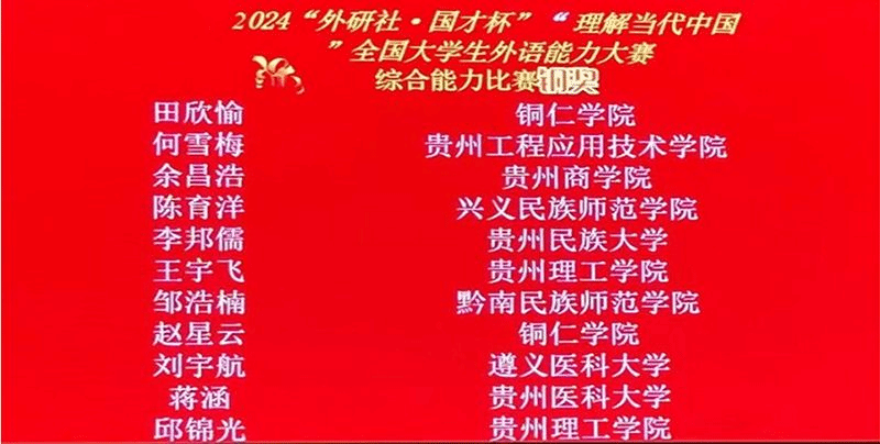 我院特别重视本次国大学生外语能力大赛工作,精心挑选专业教师担任指导。学生在“外研社•国才杯”“理解当代中国”全国大学生外语能力大赛贵州省赛中取得的优异成绩,既是对学生个人努力的肯定,也是我院教师外语教学水平的一次检验和展示。我们将继续鼓励和支持学生参与各类英语竞赛,以赛促学,以学促赛,不断提升学生的综合素质和国际竞争力。
