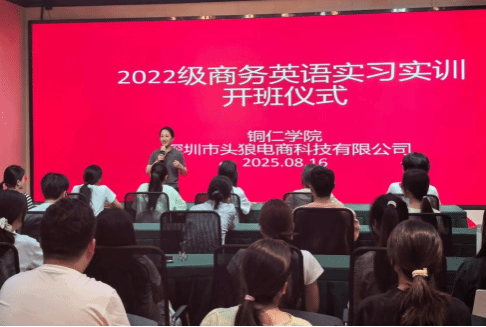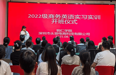 为提升商务英语专业学生的实践能力,助力学生以饱满的热情迎接即将到来的实习实训,2025年8月16日,bv伟德国际1946国际学院与企业在深圳华南电商产业科技有限公司会议厅,举行了2022级商务英语学生的实习实训开班仪式。出席仪式的有商务英语实习指导教师孙用常、华南电商公司总经理黄兴朋、华南电商企业导师麦君洁以及2022级商务英语专业全体实习实训学生。