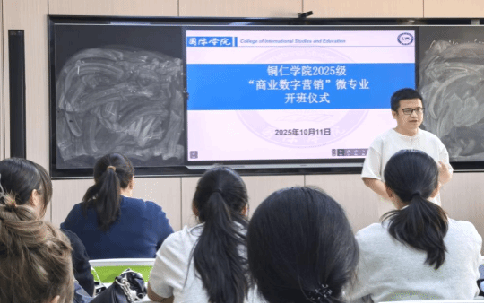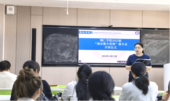 2025年10月11日,bv伟德国际19462025级“商业数字营销”微专业开班仪式在明理楼A301教室举行。国际学院副院长杨芹,2025级微专业负责人兼班主任孙用常,2024级微专业班主任杨婷,微专业线下课程任课老师饶华宏以及2025级商业数字营销微专业全体学生,参加了开班仪式。仪式由孙用常主持。