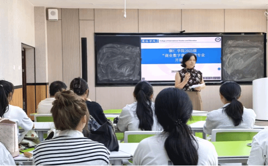 班主任孙用常从微专业与跨学科结合角度出发,介绍了“商业数字营销”微专业的课程设置和教学安排。她说,微专业的课程将紧密结合实际应用,涵盖数字营销的各个方面,包括市场调研、品牌建设、社交媒体营销、数据分析等。教学团队将采用中方教师线下授课、外方教师线上授课,学业导师辅助学习等多种教学方法,帮助学生提升学习效果和实践能力。她鼓励学生要积极参与课堂互动,主动思考问题,勇于创新实践。