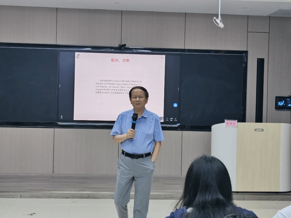 为进一步提升国际学院英语专业学生的教学能力与教学水平,4月21日下午,学院请广西民族大学外国语学院教授、博士生导师、上海交大计算机工学博士、山东大学外国语言文学博士后、中国英汉语比较研究会翻译史研究专委会秘书长、常务理事、功能语言学专委会常务理事、语言服务专委会理事李学宁教授在明理楼A301教室作题为“听力与阅读理解:蕴含式P-Q”的学术讲座。我院英语专业100余名同学参加。