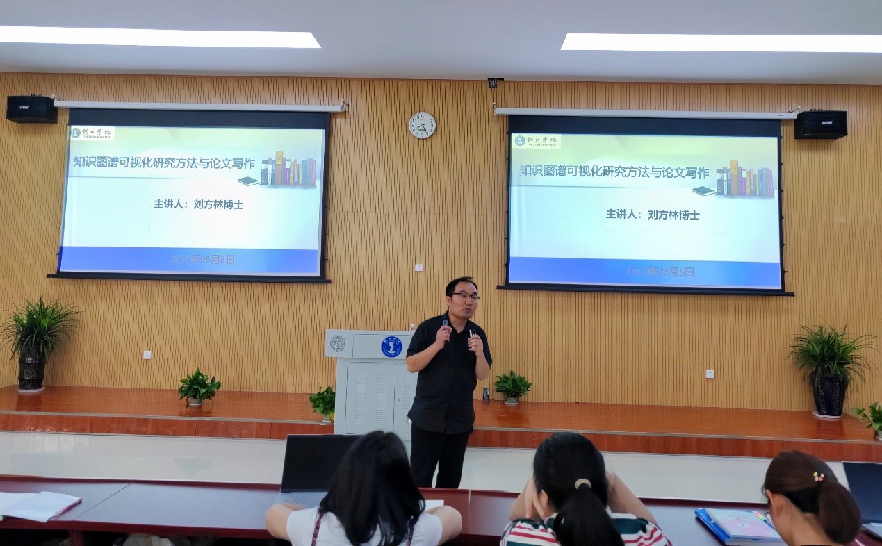 为了提高教师的科研能力,提升学生论文写作质量,6月8日下午,国际学院在博思楼105教室举行了一场以“知识图谱可视化研究方法与论文写作”为主题的讲座活动。本次讲座由教育学院刘方林博士主讲,国际学院李谦副院长主持。国际学院20级全体学生及学院部分教师参加了讲座活动。