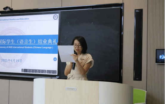 2025年6月19日上午,在国际学院301智慧教室举行了2025届国际学生的结业典礼暨证书颁发仪式。国际合作与交流处处长刘姗、国际学院党委书记张志会、国际学院党委副书记鲁芮汐、国际学院党政办主任雷远东、国际学院国际教育系全体教师以及来自俄罗斯、孟加拉、巴基斯坦、塔吉克斯坦等18个国家的共计56名汉语言进修国际学生出席了典礼。