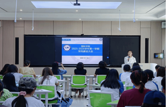 会上,国际学院副院长杨芹围绕“终身学习态度养成”“诚信考试坚守”“专业成长深耕”作学风建设动员。她强调诚信考试是品德考验,要以严规护航,呼吁学生筑牢防线、严守红线、争当使者。她指出,专业是安身立命根本,要早做职业规划,要“钻得深”才能走得更远。学风建设需师生协同,学院也会优化管理、完善激励。她呼吁以终身学习实现“三个转变”,突破认知局限。
