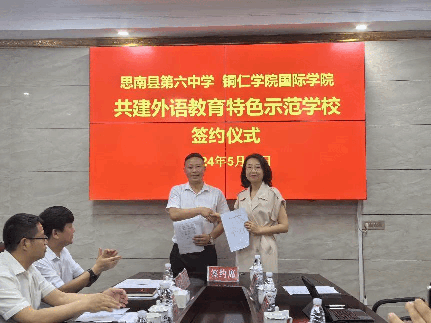 为促进思南县第六中学教育教学水平不断提高,进一步推进外语教育特色示范学校创建合作项目深入发展,2024年5月25日bv伟德国际1946国际学院-思南县第六中学合作签约暨田兴斌博士工作站揭牌仪式在思南第六中学举行。