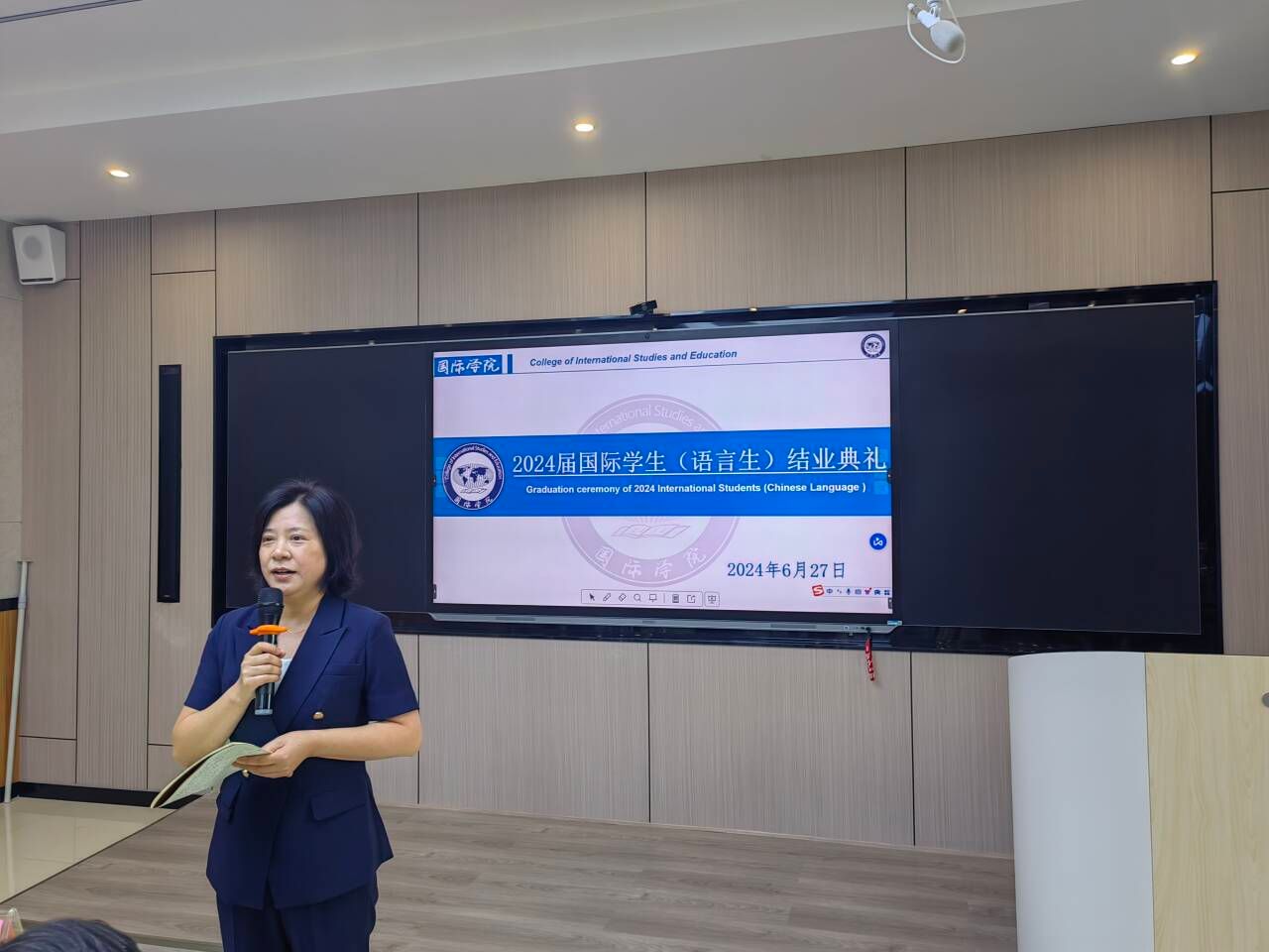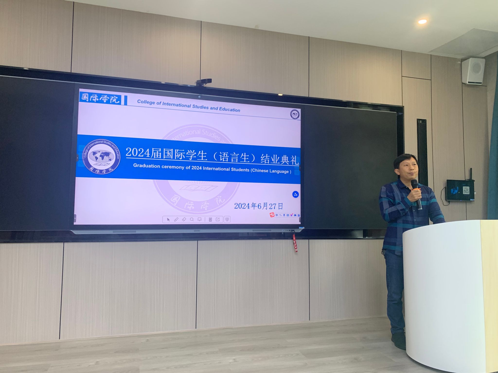 张志会对同学们的顺利结业表示热烈祝贺,并寄语2024届全体语言生在今后的生活和学习中,传承和发扬国际友谊和文化交流精神,多到中国各地走走看看,多与国内学生交流,了解中国国情,体验中国发展,感受中国精神,讲好中国故事。