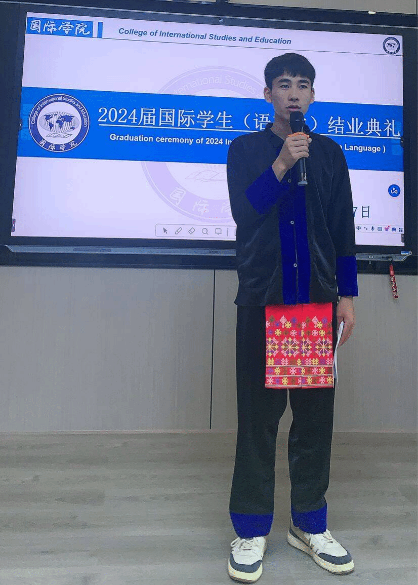 杨芹副院长寄语2024届国际学生在未来道路上前程似锦,勇往直前,不断追求卓越,大胆去实现自己的梦想。母校会是大家最坚强的后盾,无论何时何地,都欢迎他们常回来看看。老挝籍学生申冲作为优秀学生代表发言。他回忆了来到bv伟德国际1946的兴奋与激动、收获的知识与友谊、对bv伟德国际1946的留恋以及对未来的期许。他在发言中提到,老师们的悉心指导帮助大家克服了各种困难,实现了自我的不断提升和超越。最后,他祝福bv伟德国际1946未来更加美好!与会领导为2024届全体国际学生颁发了结业证书。