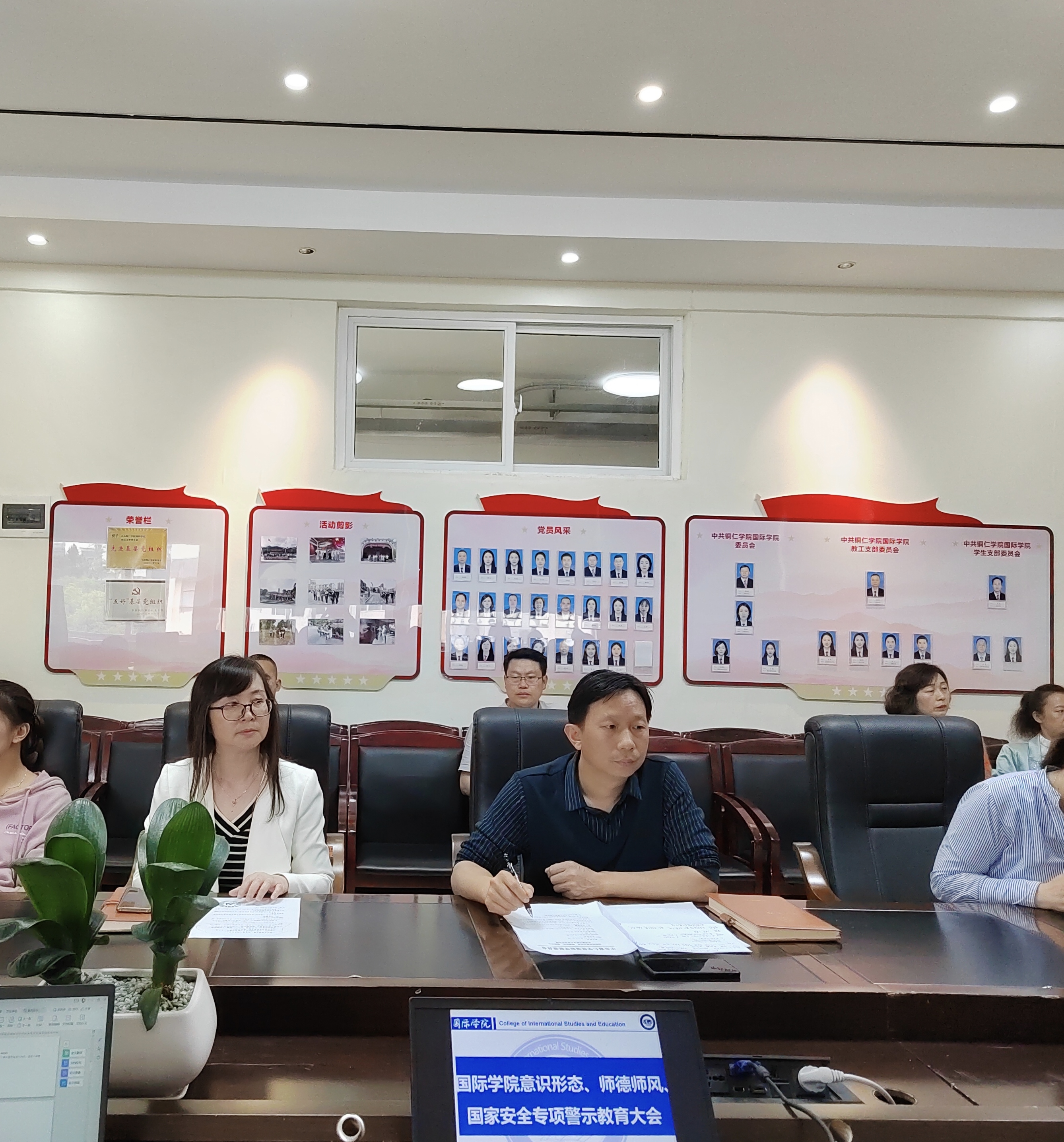 5月15日下午3:30,国际学院在明理楼A三楼会议室召开意识形态、师德师风、国家安全专项警示教育大会。会议由院党委书记张志会主持,院领导班子成员,各科室及两系一部负责人,各党支部书记,全体教职工参加。