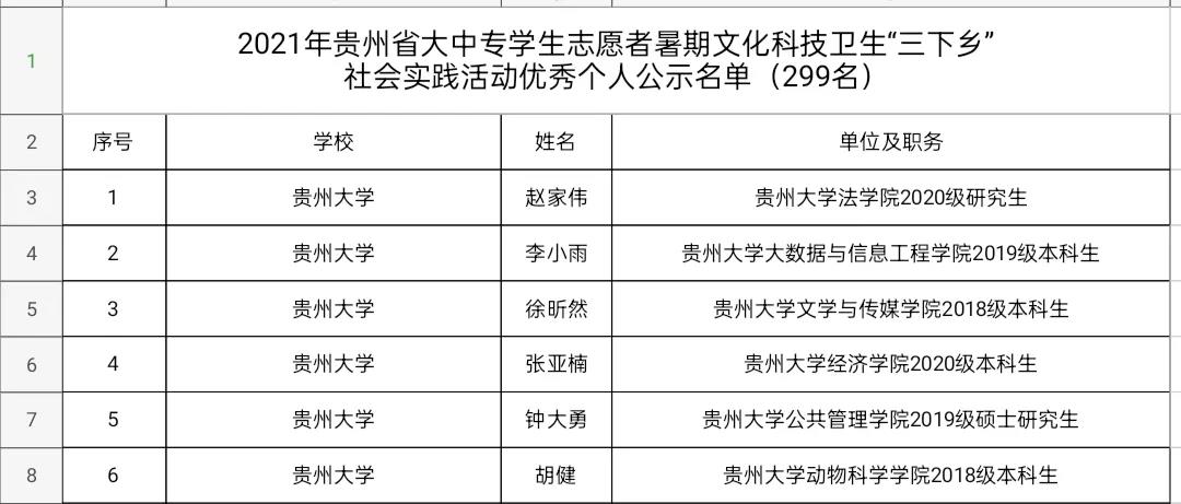 根据活动安排,为表彰先进、激励典型,决定对在2021年贵州省大中专学生志愿者暑期文化科技卫生“三下乡”社会实践活动中表现突出的集体和个人开展评优奖励。