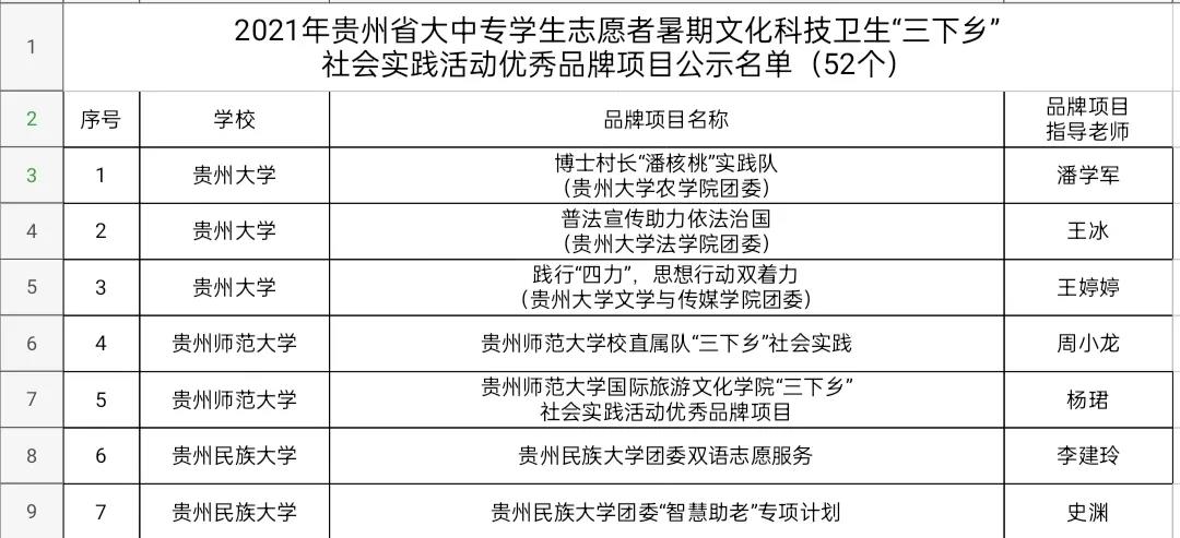为深入学习宣传贯彻习近平新时代中国特色社会主义思想,引导和帮助广大青年学生上好与现实相结合的“大思政课”,省委宣传部、省精神文明办、省教育厅、团省委、省学联于6月至10月共同举办了2021年贵州省大中专学生志愿者暑期文化科技卫生“三下乡”社会实践活动。