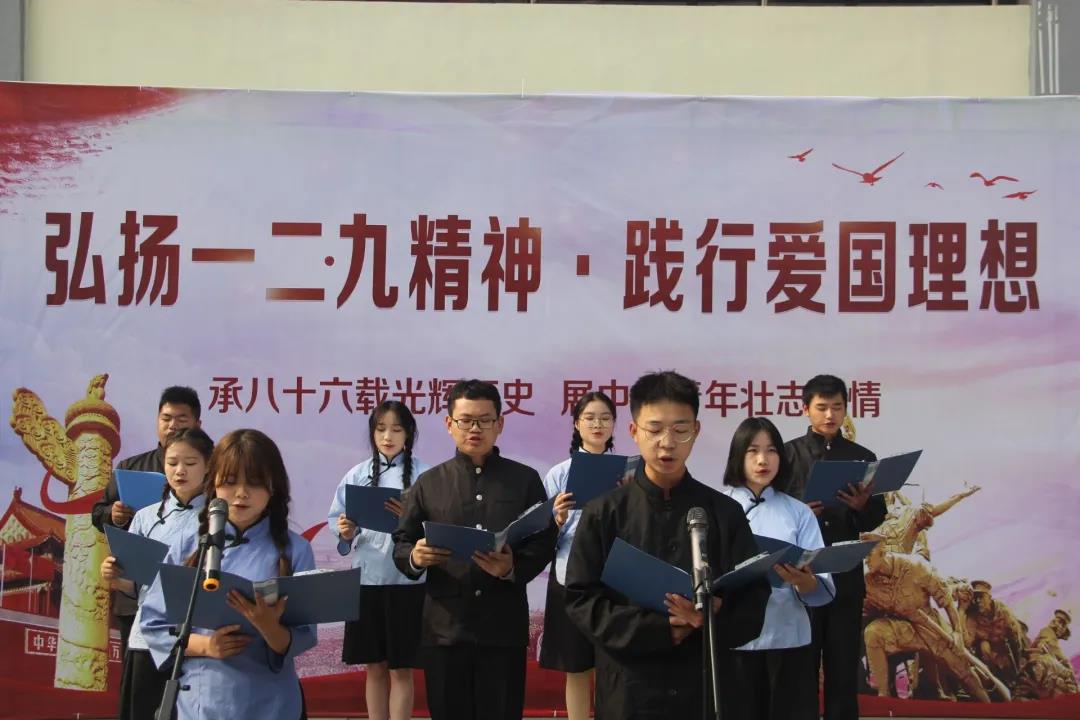 活动中,朗诵团阵阵激昂、亢奋的朗诵声,仿佛将我们带回八十六年前那个风起云涌、豪杰辈出的时代。在民族生死存亡之际,爱国青年们振臂高呼“停止内战,一致对外”;他们勇作先锋,热血横撒,以坚定不移的决心,托起民族的脊梁!