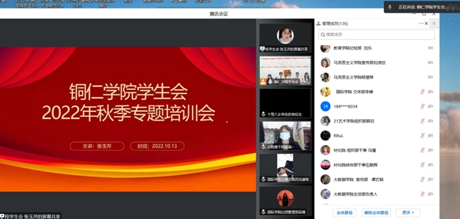 为深入学习贯彻习近平新时代中国特色社会主义思想,特别是习近平总书记关于青年工作的重要思想,深化学生会组织改革工作,进一步提升学生会的引领力、组织力、服务力。10月13日,伟德官网学生会组织开展了以“喜迎二十大·奋斗向未来”为主题的秋季线上学生会专题培训,本次专题培训采用线上形式举行。校团委副书记张朝飞出席并讲话,180余名学生会干部参加了本次培训。会议由主席团成员陈梓豪主持。