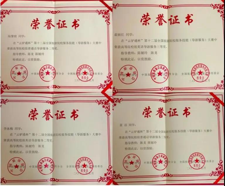 伟德官网学子在第十二届全国旅游院校服务技能大赛(导游服务)中斩获两个二等奖、两个三等奖。