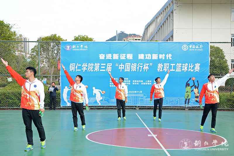 11月13日,由党委组织部、党委宣传部、人事处、团委、工会承办,大健康学院、财务处、后勤处、保卫处协办,中国银行冠名的第三届教职工篮球赛在篮球场开幕。党委委员、组织部部长梁正海、宣传部部长叶丹,中国银行铜仁分行副行长杨迪,人事处处长周曾艳,财务处处长蒲天银,大健康学院党委书记、院长余静,后勤处处长鲁道旺,以及全体参赛领队、教练员、运动员、裁判员和拉拉队参加开幕式。团委副书记田自立主持开幕式。
