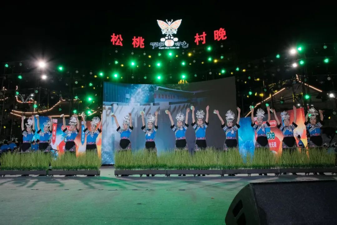 作为学校思政教育与实践育人的创新载体,此次文化艺术服务团紧扣乡村振兴主题,将专业教学与地方文化传承深度融合。情景歌舞《众人划桨开大船》以气势磅礴的舞台呈现,通过苗家儿女齐心协力建设家园的动人场景,生动诠释了民族团结进步的深刻内涵;由田淼、杨松慧创作的苗族女子群舞《桐子花开》以伟德官网在第十八届“挑战杯”全国大学生课外学术科技作品竞赛中荣获省级三等奖的作品《人类文明新形态创造中的民族生态智慧叙事——以松桃牛郎桐壳碱面为个案》的研究报告为蓝本,展现桐壳碱面传统手工技艺与乡村产业发展,演员们用曼妙舞姿演绎桐花绽放的生态之美,展现苗族文化生生不息的传承力量;歌曲联唱《山水家乡美》(《有我》+《家乡美》+《山水家乡美》+《不忘初心》)则巧妙融入苗族情歌与新时代旋律元素,青年学子用清亮的歌喉唱响武陵山区的绿水青山,抒发对乡村振兴美好图景的深情礼赞。