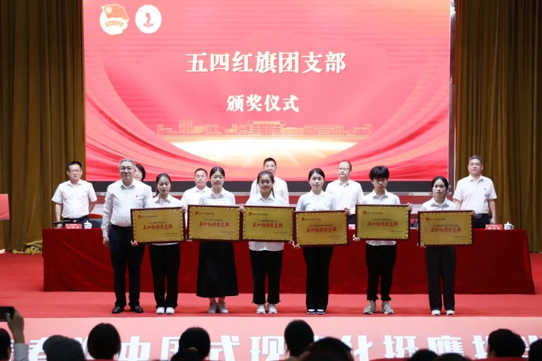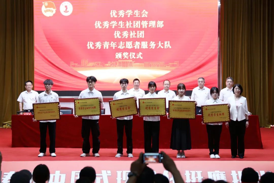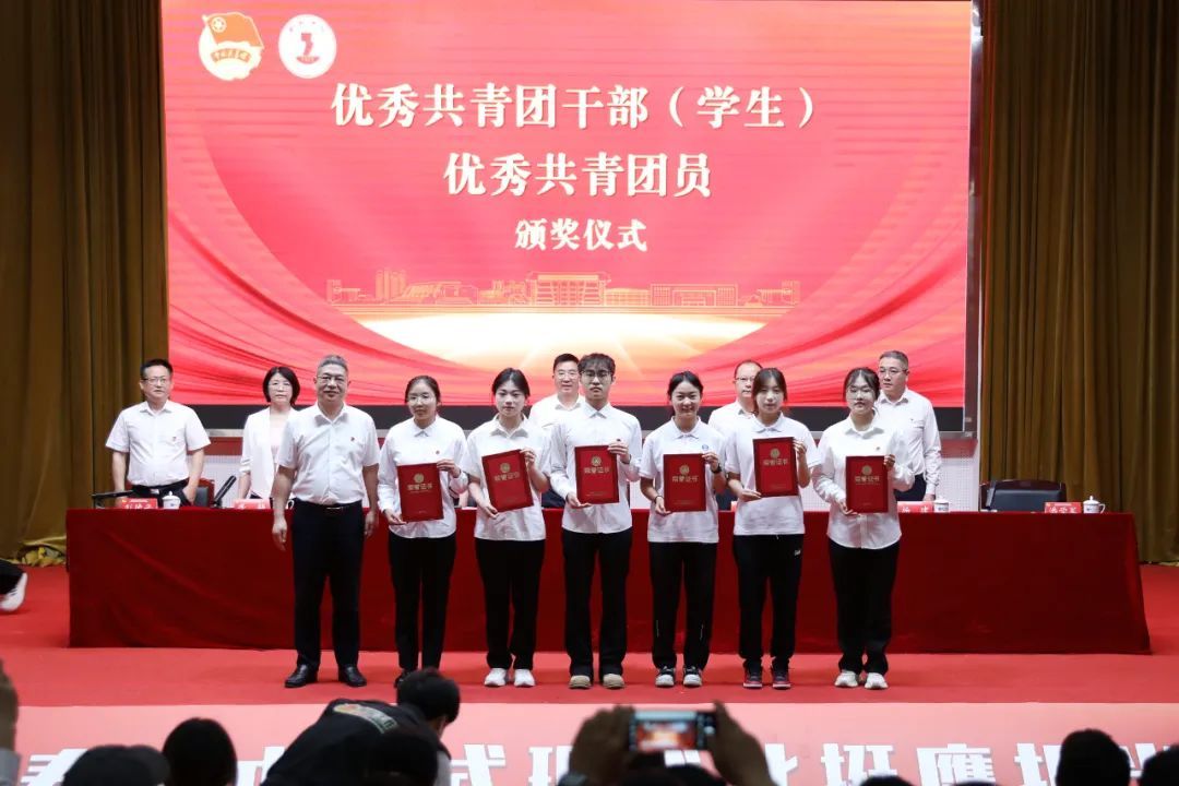 会上,杨建宣读了表彰文件;出席大会的领导为获表彰的先进集体和个人进行了颁奖。此次表彰大会,共有3个五四红旗团总支、11个五四红旗团支部、3个优秀学生会、3个优秀社团管理部、4个优秀社团、3个优秀青年志愿者服务大队、3名优秀共青团干部(教师)、12名优秀共青团干部(学生)、29名优秀共青团员、33名优秀青年志愿者获得了表彰。