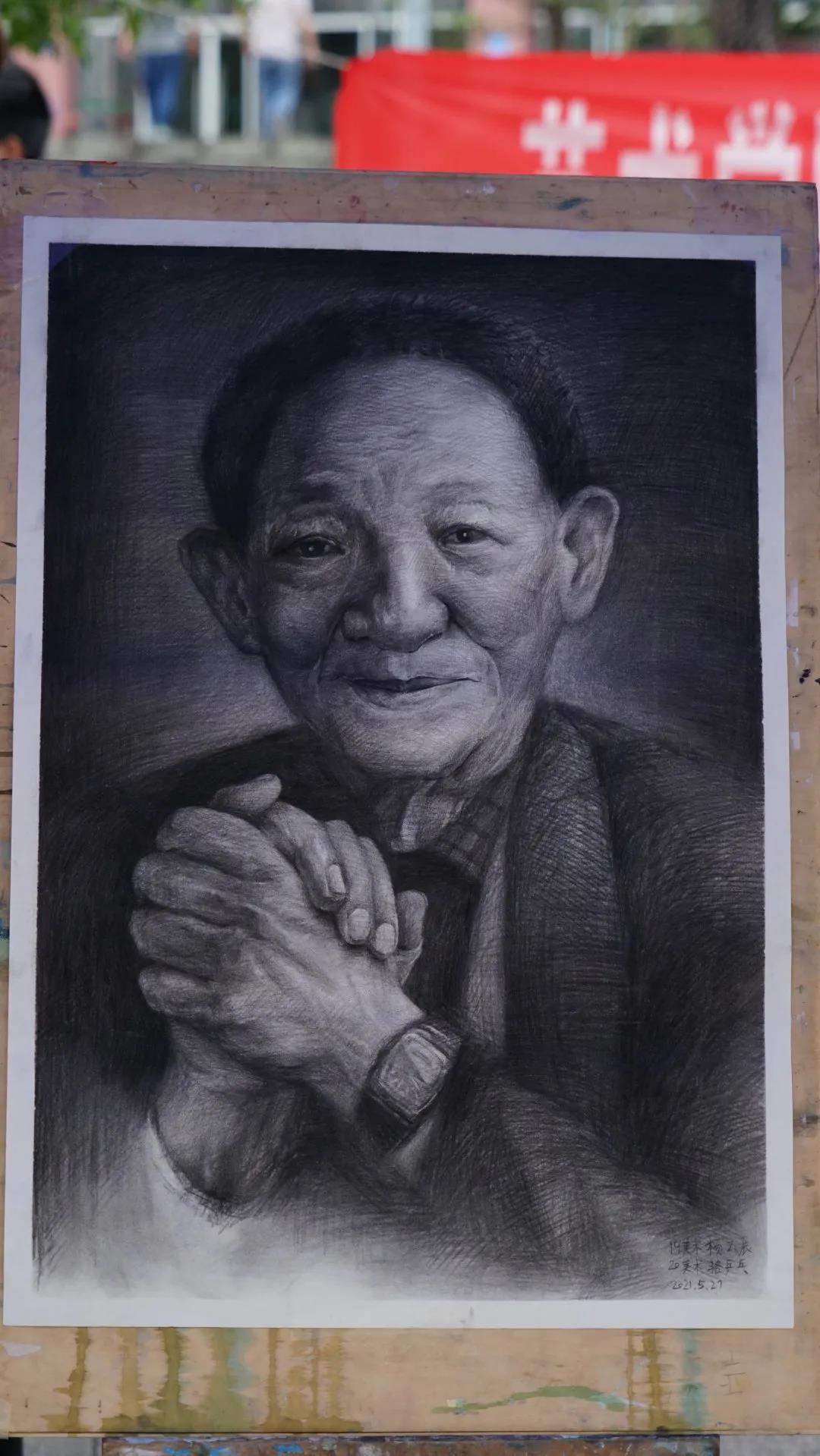 一场特殊的画展,道不尽的哀思与情怀。艺术学院学子用这样一种特殊的方式,向袁老致敬,传承先辈精神,在全校范围内掀起了缅怀伟人、铭记深恩的热潮。