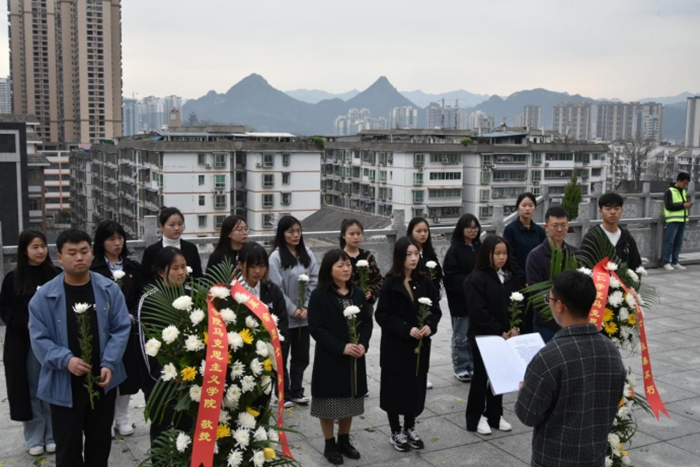 清明时节,哀思绵绵!为缅怀革命先烈的丰功伟绩,弘扬革命先辈敢于斗争、艰苦奋斗的精神,厚植爱国主义情怀,3月31日上午,伟德官网马克思主义学院学生党支部张卫红老师、团总支书记迟婕和学生科科长刘克彬带领部分学生党员、发展对象、入党积极分子、团员代表前往铜仁市文笔峰烈士陵园开展了“党建带团建”红色教育文化 ——“缅怀革命先烈,争做时代好青年”清明祭扫活动。