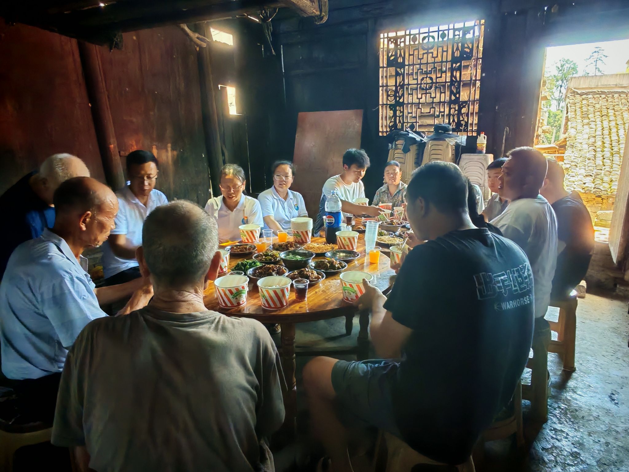 (四茶园村村民自发帮助置办午餐)