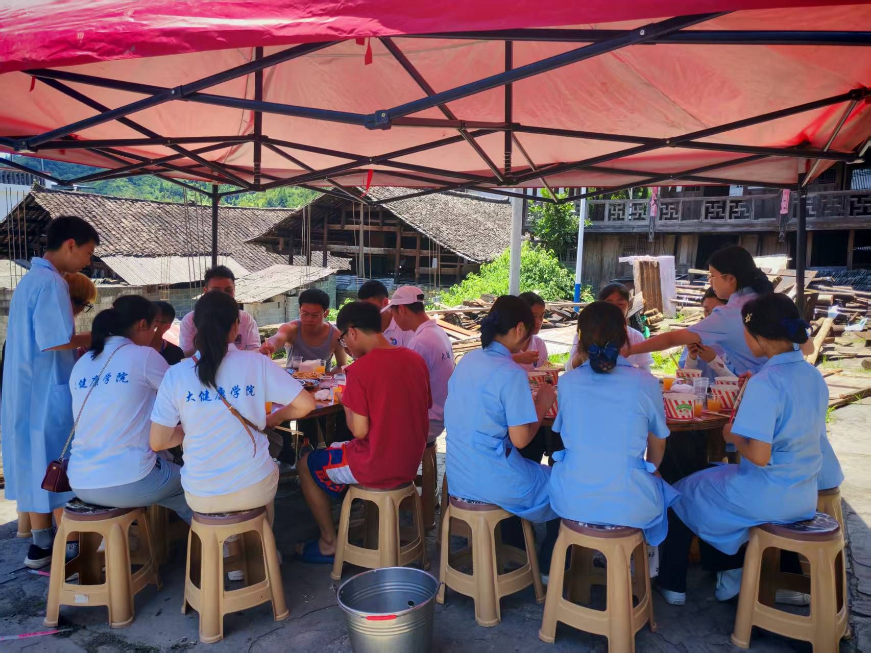 活动期间,师生们充分发挥医学与体育健康专业优势,通过健康义诊、急救培训等方式,为村民带来了实实在在的健康服务,让村民在家门口就能享受到专业医疗资源;在环境整治活动中,大家手持劳动工具,积极清理乡村环境,助力乡村面貌焕新;此外,师生们还特别关爱留守儿童,给他们送去温暖与关怀。驻村第一书记对本次活动给予高度评价,认为活动不仅让高校学子在实践中增长了才干,还实现了校地共赢,充分展现了高校服务社会的责任担当。通过 “送健康、送知识、送文明”,为乡村发展注入了新活力,得到了当地群众的一致好评。此次 “三下乡” 活动,为乡村振兴注入了青春动能,也为高校与乡村的合作交流搭建了良好平台。活动最后四茶园村村民自发与团队师生共同置办了一顿丰盛的午餐。