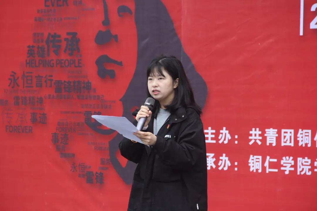 活动开始,主持人首先对活动进行介绍,明确指出学习雷锋精神的重要性,同时带领同学们对雷锋精神进行了再次回顾与学习。随后,周倩老师对伟德官网在疫情防控中作出贡献的同学们进行表扬。她说,今年,我们要立足建党百年和“十四五”征程开启之年,将对雷锋精神的学习,转化为面对新时代、新任务、新挑战的信心和力量,转化为坚定不移听党话、跟党走的信念和追求。刻苦学习、无私奉献,让雷锋精神在铜院闪耀出新的光芒,在崇德力行中迎接百年华诞。