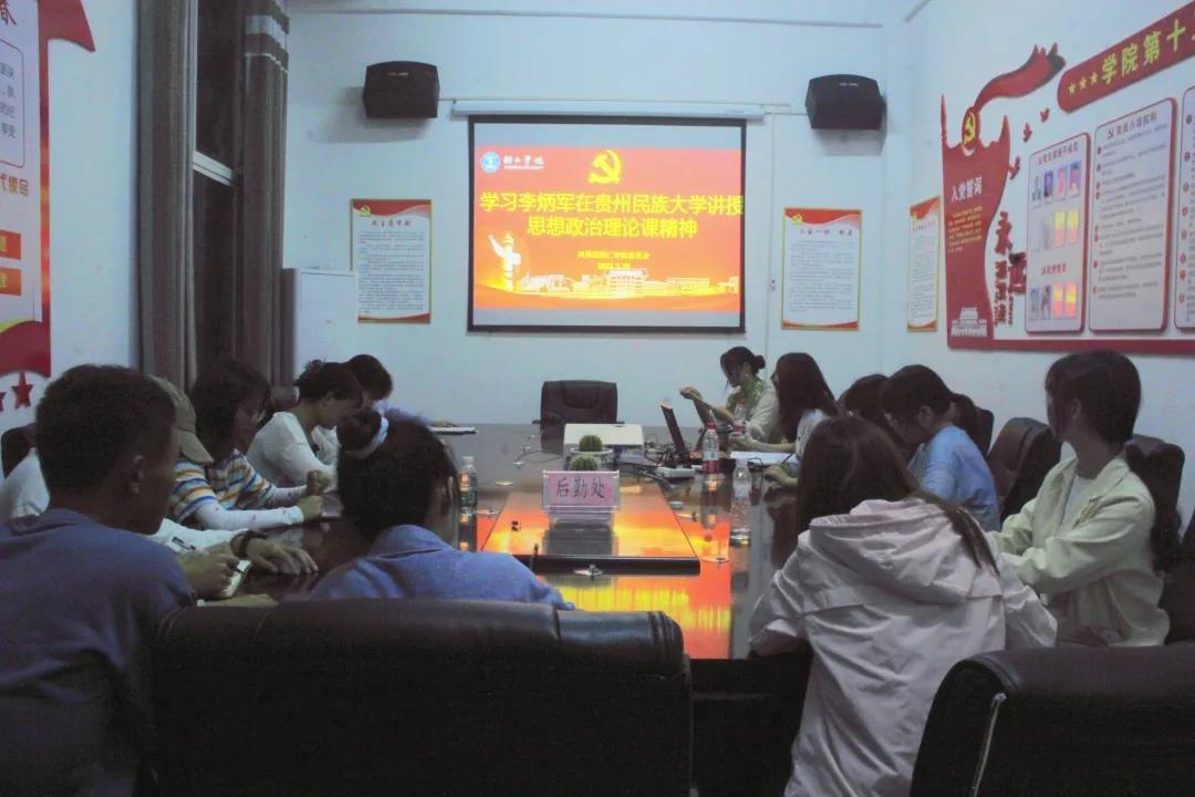 5月29日晚上,伟德官网学生会组织各二级学院学生代表在团委办公室学习李炳军在贵州民族大学讲授思想政治理论课精神,本次学习会议由林婷娟主持。